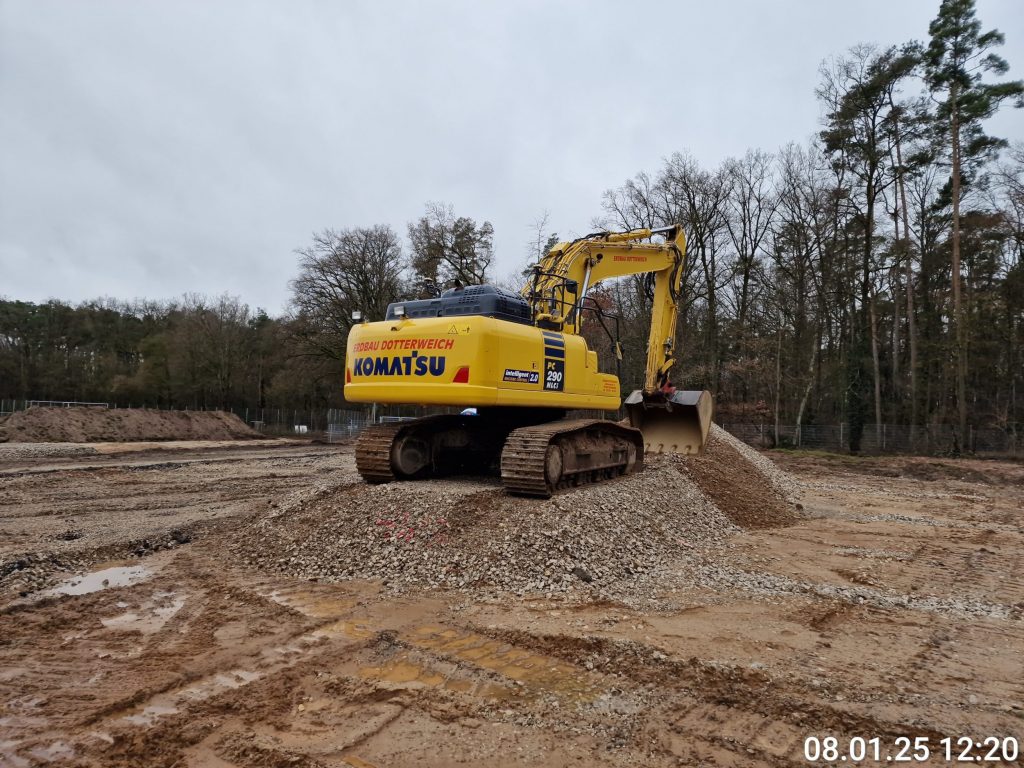 Herstellung der Baugrube inkl. Nebenflächen mit insgesamt ca. 10.800 m³ Aushub aus Auffüllungen, gewachsenem Boden und Fels (Bodenklasse 6, Keupersandstein) - Leitungs- und Kanalbauarbeiten: